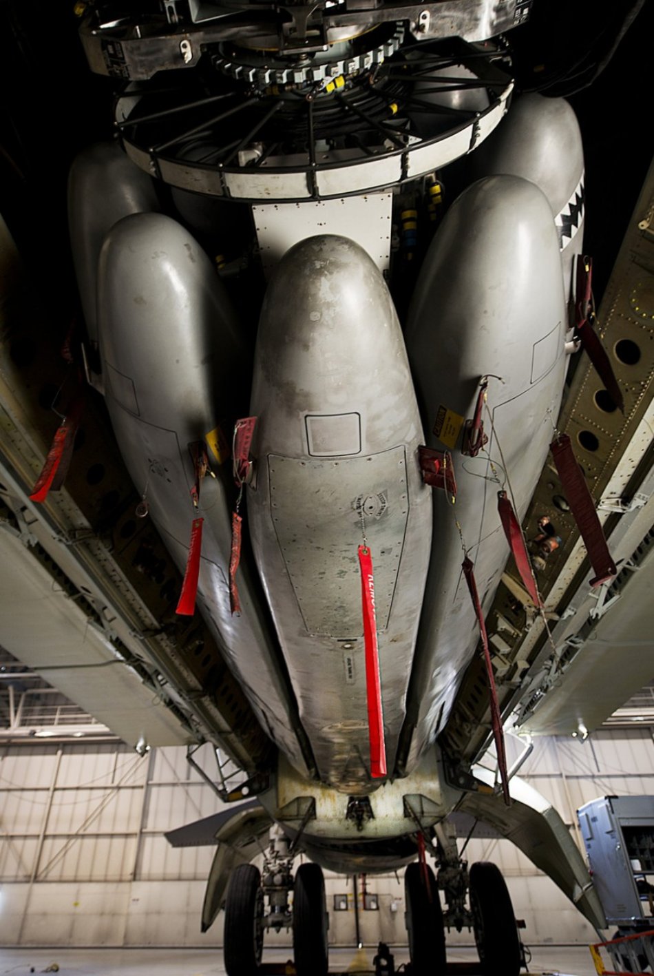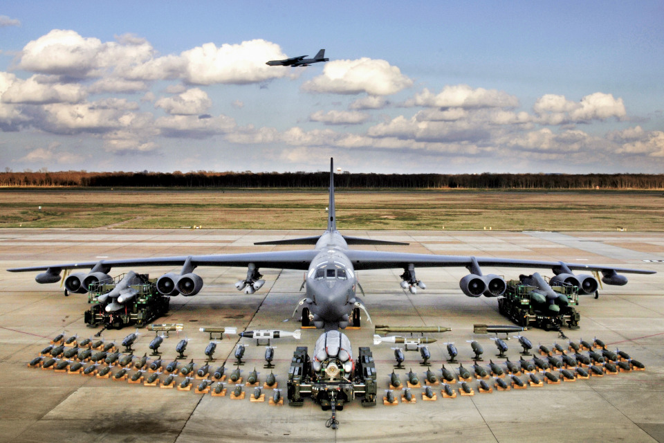 Bombowiec B-52 jest w stanie przenieść 31 500 kg różnego rodzaju broni konwencjonalnej (bomby, miny, rakiety) oraz bomby jądrowe (B28, B43, B53, B61, B83). Typowy ładunek konwencjonalny to na przykład 51 bomb 500-funtowych (241 kg). B-52 może też przenosić 20 pocisków manewrujących do atakowania z większych odległości (stand-off).