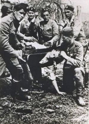 Przez Imotski ciężarówkami w pośpiechu, jadą czarni od Jure Franceticia (chodzi o Czarny Legion ustaszy)