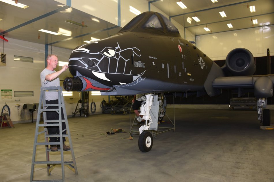 Zdjęcia udostępnione przez Senior Master Sgt. Vincent De Groot. Zdjęcia samolotu A-10 Thunderbolt II amerykańskich sił powietrznych z Indiana Air National Guard’s 122nd Fighter Wing malowanego w Air National Guard Paint Facility in Sioux City, Iowa.