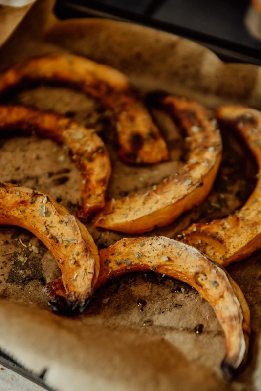 Pieczona dynia hokkaido z serem żółtym i papryczką chili
